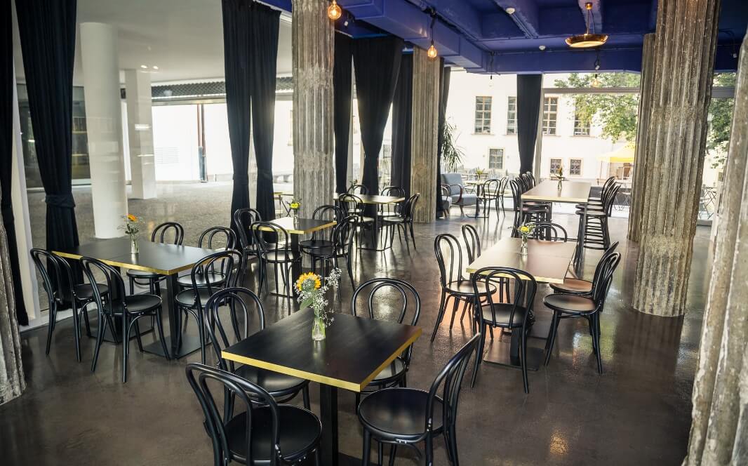 Kavárna Podobrazy na Zelném trhu vám padne do noty. Cvrkot města společně s interiérem kavárny od architekta Michala Palaščáka a nábytkem z dílny Jindřicha Halabaly povýší každou akci na nezapomenutelný zážitek.