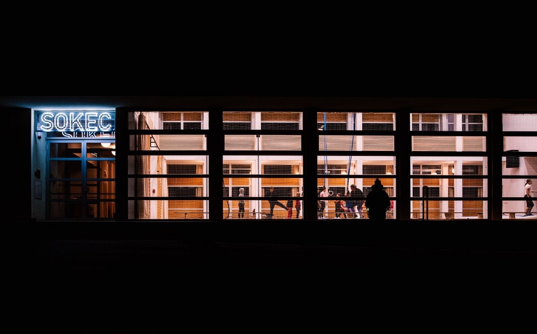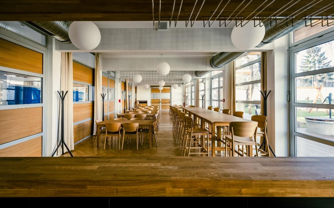 Multifunkční zařízení s plně vybavenou tělocvičnou, venkovním sportovním hřištěm a dětským hřištěm.